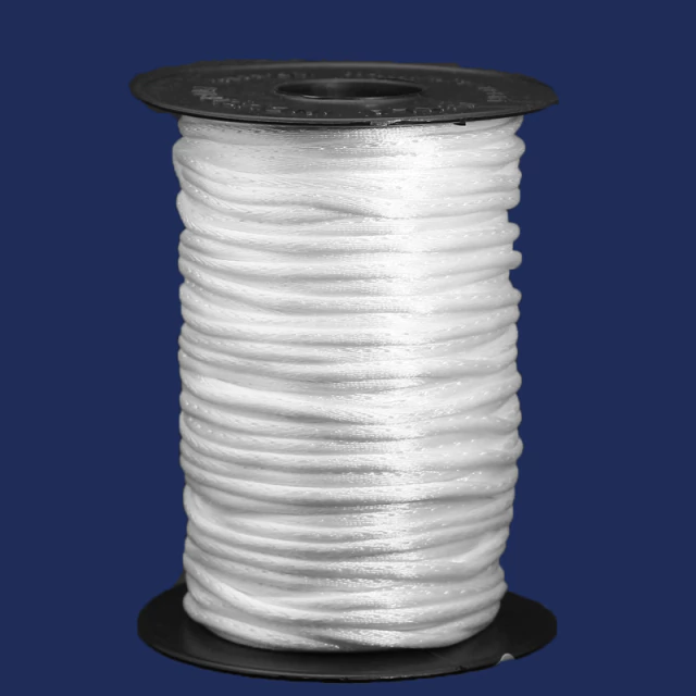 Cordão acetinado de poliamida, branco, conhecido como cordão de cetim. Usado na confecção de alças e amarrações em peças finas de lingerie, moda festa, blusinhas, artesanato e outros.