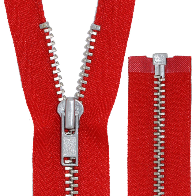 Zíper de metal médio destacável, acabamento niquelado, com cursor automático. Este tipo de cursor trava automaticamente quando o puxador se solta, podendo ser aplicado em jaquetas, blusas e outros modelos feitos em tecidos médios. OBS.: este modelo de zíper pode ser encomendado em tamanhos especiais abaixo de 95 cm ou com cursores diferentes, consulte!