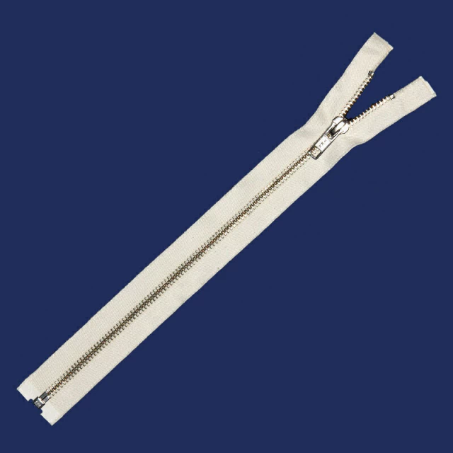 Zíper de metal grosso destacável, acabamento niquelado, com cursor automático e cadarço misto para tingimento. Este tipo de cursor trava automaticamente quando o puxador se solta, podendo ser aplicado em jaquetas, blusas e outros modelos feitos em tecidos médios e pesados. O cadarço misto permite tingimento porque é revestido de algodão cru, garantindo excelente fixação de cor. OBS.: este modelo de zíper pode ser encomendado em tamanhos especiais abaixo de 90 cm ou com cursores diferentes, consulte!