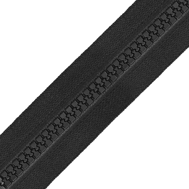 Zíper de vislon (plástico) grosso, por metro, para montagem. Muito usado em moda esporte, surf, beach e streetwear, pois os dentes em plástico injetado são resistentes à corrosão marítima. Também é bastante utilizado em mochilas e bolsas. Este zíper pode ser montado em duas cores (um lado de uma cor e o outro lado de outra), criando efeitos de decoração originais. Utilizar cursor para zíper de vislon 05 grosso YKK OBS.: os terminais (superiores e inferiores) são vendidos separadamente, consulte nesta seção.