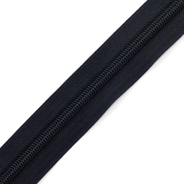 Zíper de poliéster supergrosso, por metro, para montagem, com chain do tipo RC (racquet coil). Pode ser aplicado em bolsas, malas, calçados e outros modelos em couro e tecidos pesados. O trilho (ou chain) racquet coil foi especialmente desenvolvido para aplicação em bagagens, com excelente desempenho no fechamento de malas e mochilas. Resistente à abrasão. Utilizar cursor para zíper de poliéster 08 supergrosso YKK.